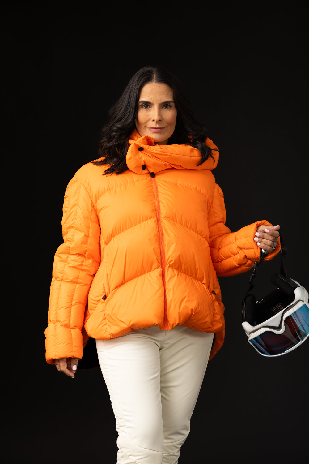 Fit: Oversized. Confeccionada en 100% nylon con forro del mismo material y relleno de 90% plumón y 10% plumas. Incluye capucha, cierre frontal con zipper y broches, además de bolsillos con cierre.