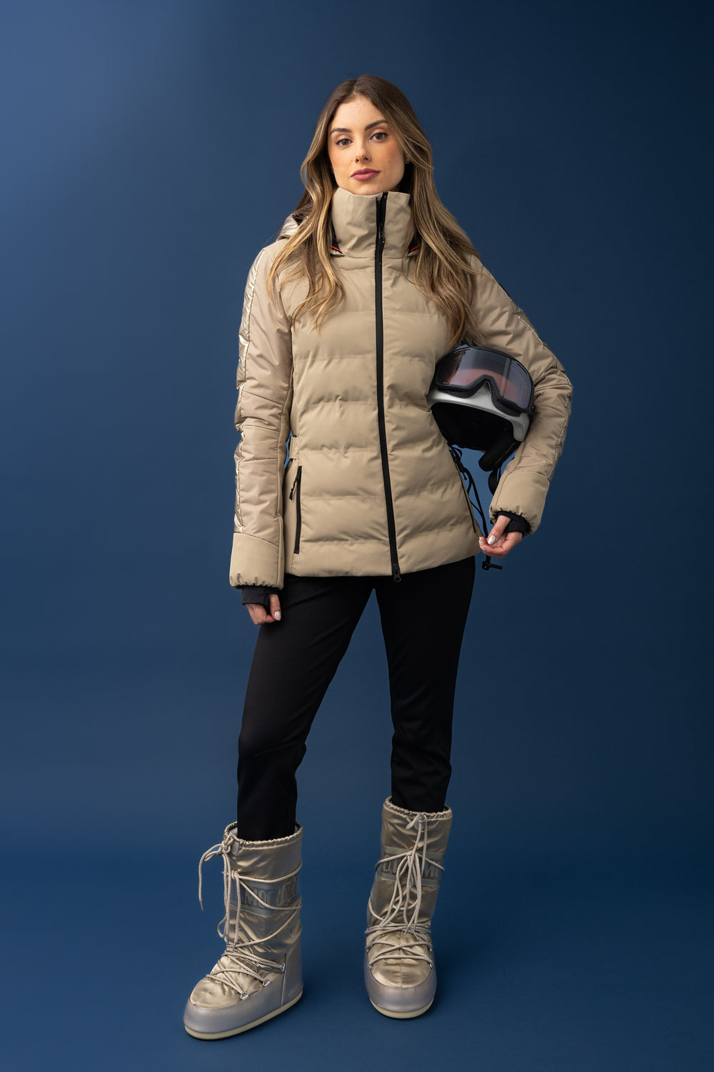 La CADJA Ski Jacket de FIRE + ICE une estilo deportivo y funcionalidad sin concesiones. Confeccionada en tejido 4-way stretch transpirable y repelente al agua, ofrece total libertad de movimiento en la nieve. Sus detalles técnicos incluyen cierre bi-direccional, snow skirt y múltiples bolsillos, mientras que su diseño limpio y moderno la hace perfecta tanto en la pista como en el après-ski. Comodidad, estilo y rendimiento en un solo equilibrio.