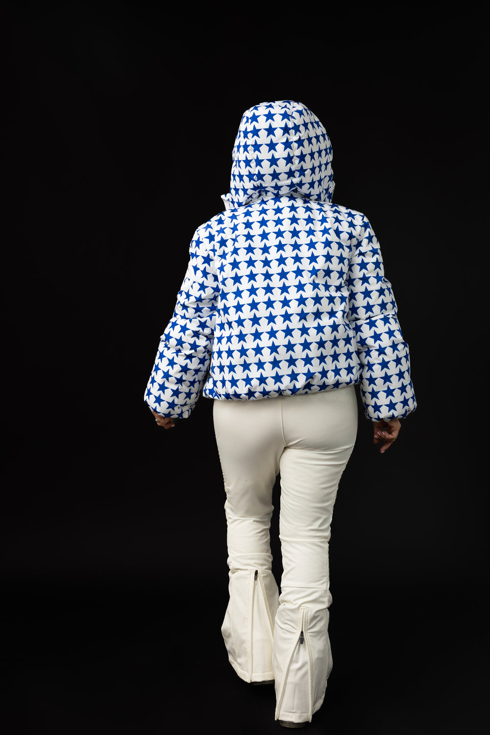 Icónico pantalón de esquí inspirado en la silueta del denim: tiro alto + corte acampanado que estiliza al máximo.